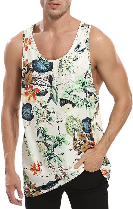 Printed Hawaiian Style Vacation Leisure Summer Slim Fit Breathable Sleeveless Vest