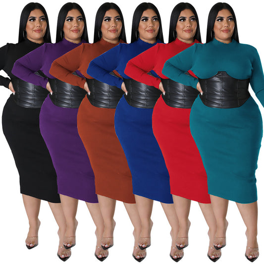Fall Plus Size Women's Zipper Hit Leather Dress